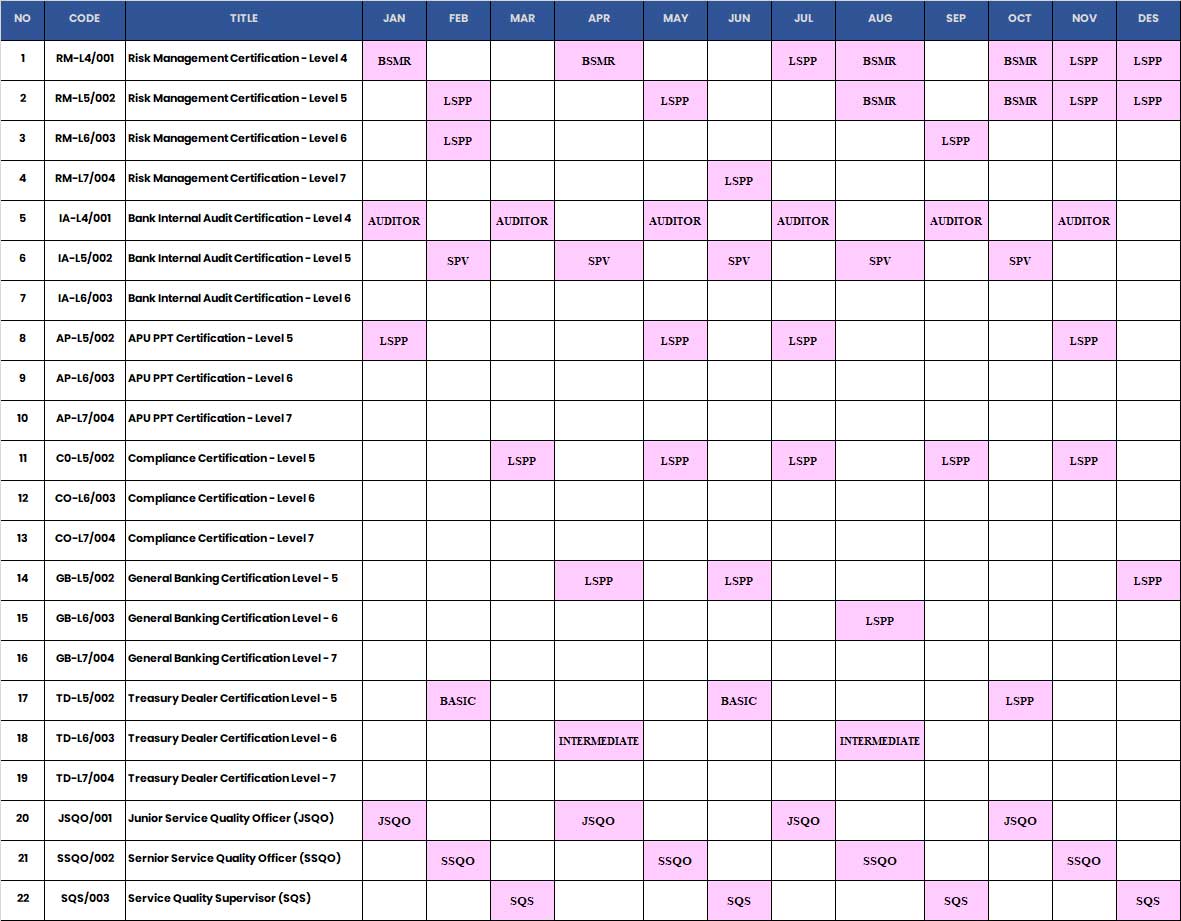 Note:This training schedule is subject to change without prior notice.Please contact us for further information.